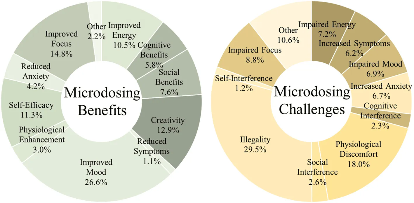 Background: Microdosing psychedelics is the practice of consuming very low, sub-hallucinogenic doses of a psychedelic substance, such as lysergic acid diethylamide (LSD) or psilocybin-containing mushrooms. According to media reports, microdosing has grown in popularity, yet the scientific literature contains minimal research on this practice. There has been limited reporting on adverse events associated with microdosing, and the experiences of microdosers in community samples have not been categorized. Methods: In the present study, we develop a codebook of microdosing benefits and challenges (MDBC) based on the qualitative reports of a real-world sample of 278 microdosers. Results: We describe novel findings, both in terms of beneficial outcomes, such as improved mood (26.6%) and focus (14.8%), and in terms of challenging outcomes, such as physiological discomfort (18.0%) and increased anxiety (6.7%). We also show parallels between benefits and drawbacks and discuss the implications of these results. We probe for substance-dependent differences, finding that psilocybin-only users report the benefits of microdosing were more important than other users report. Conclusions: These mixed-methods results help summarize and frame the experiences reported by an active microdosing community as high-potential avenues for future scientific research. The MDBC taxonomy reported here informs future research, leveraging participant reports to distil the highest-potential intervention targets so research funding can be efficiently allocated. Microdosing research complements the full-dose literature as clinical treatments are developed and neuropharmacological mechanisms are sought. This framework aims to inform researchers and clinicians as experimental microdosing research begins in earnest in the years to come.